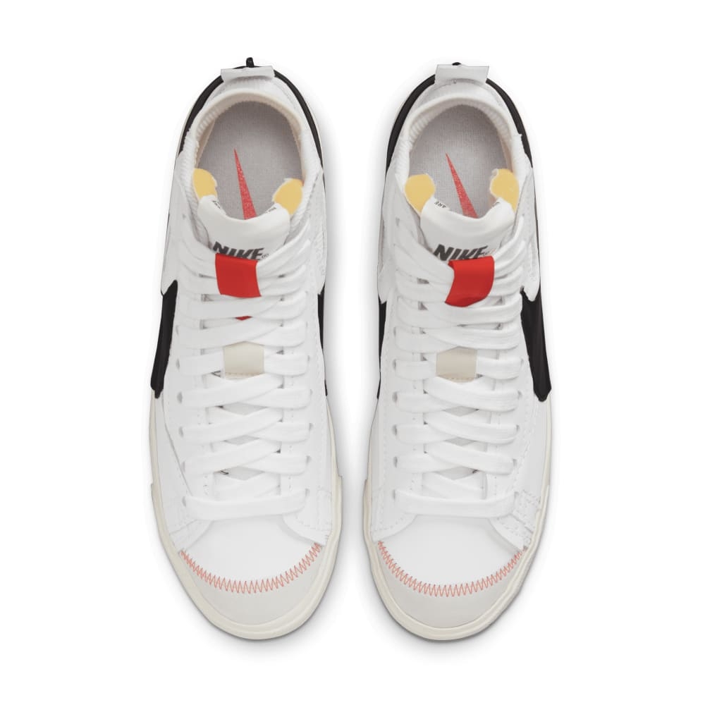 Стильный дизайн: Кроссовки Blazer Mid 77 Jumbo White Black обладают минималистичным, но выразительным дизайном. Черные и белые цвета в гармонии с контрастными деталями, также логотип Swoosh большого размера, огромные шнурки и толстая строчка придают забавный вид кроссовкам.