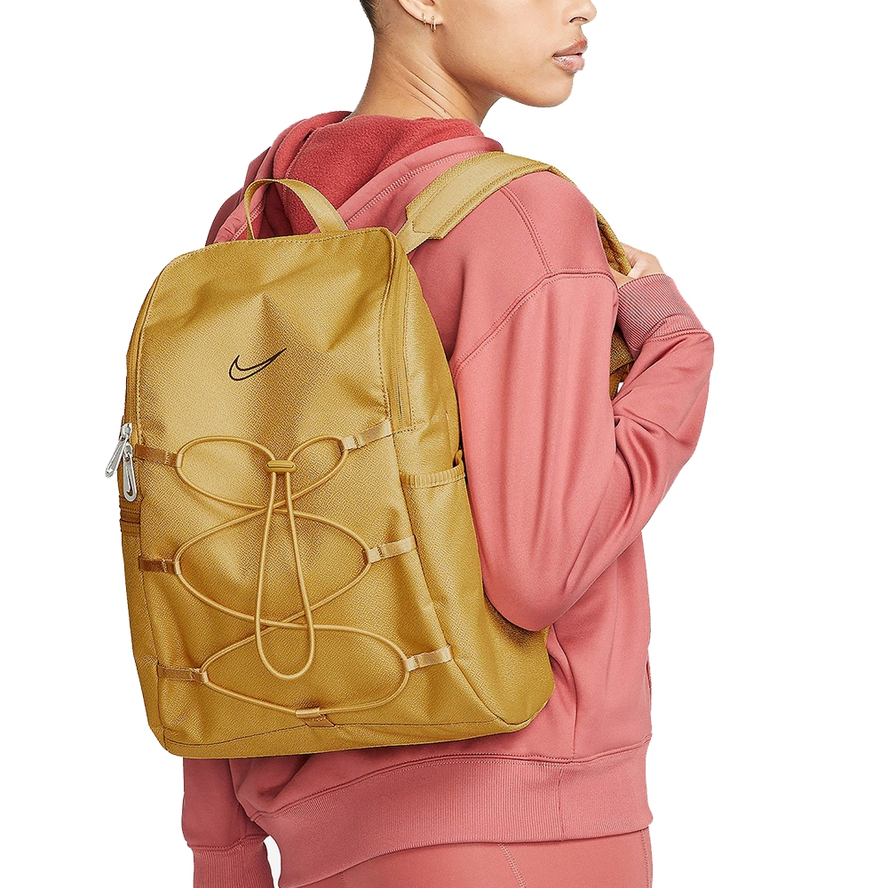 В рюкзаке Nike One имеется достаточно места для всех необходимых вещей для тренировок, работы или учебы. Он позволяет удобно разместить как ноутбук, так и коврик для йоги. Просторная основная часть рюкзака закрывается молнией сверху. Внутри есть мягкий карман для ноутбука и сетчатый карман, который обеспечивает легкую видимость нужных предметов.