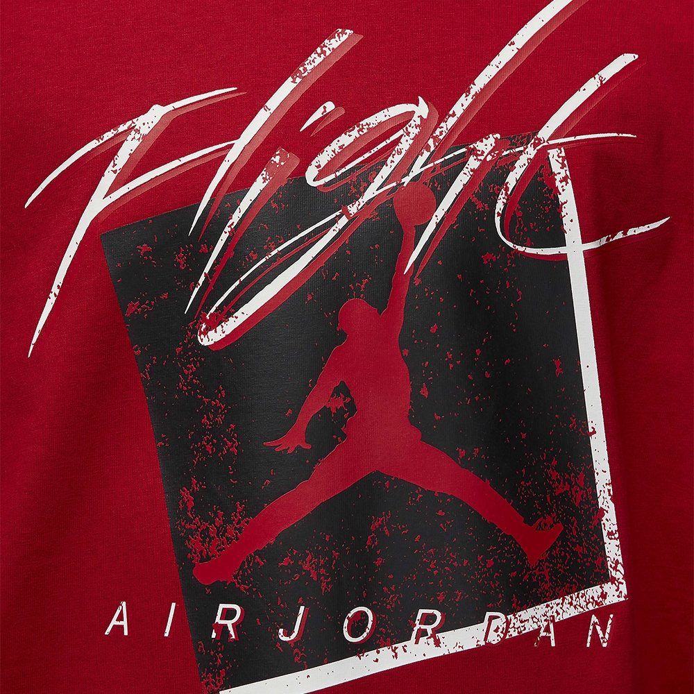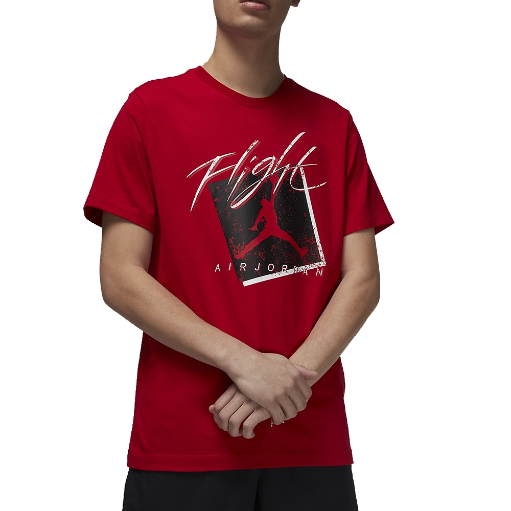 Дизайн футболки выдержан в стиле Air Jordan, который уже десятилетиями вдохновляет поклонников спорта и стиля. Яркий красный цвет создает эффектный контраст с черным графическим принтом, что придает модели неповторимый характер. Футболка Jordan Flight это не просто одежда, это путь выразить свою индивидуальность и любовь к культовому бренду.