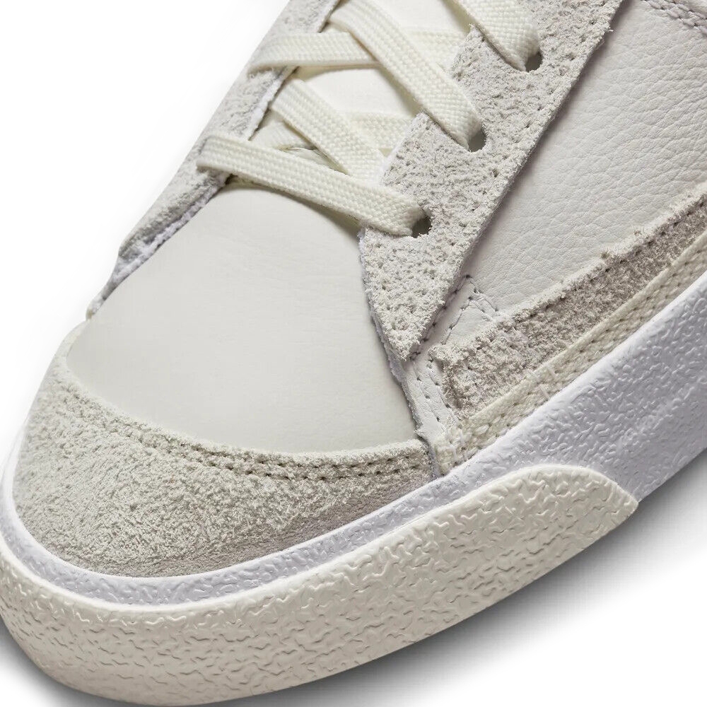 С 1970-х годов Nike Blazer Mid претерпел несколько изменений, последние из которых появились в составе фирменного пакета «Pro Club». На первый взгляд силуэт выглядит в своем традиционном ансамбле, с теми же линиями дизайна, с которыми он дебютировал несколько десятилетий назад, но при ближайшем рассмотрении обнаруживается обратное. Во-первых, тканевые панели втиснуты между кусками кожи на профилях, что придает боковым галочкам другой фон, чем обычно. На боковой стороне кроссовки белого цвета имеют дополнительный кусок материала в средней части стопы.
