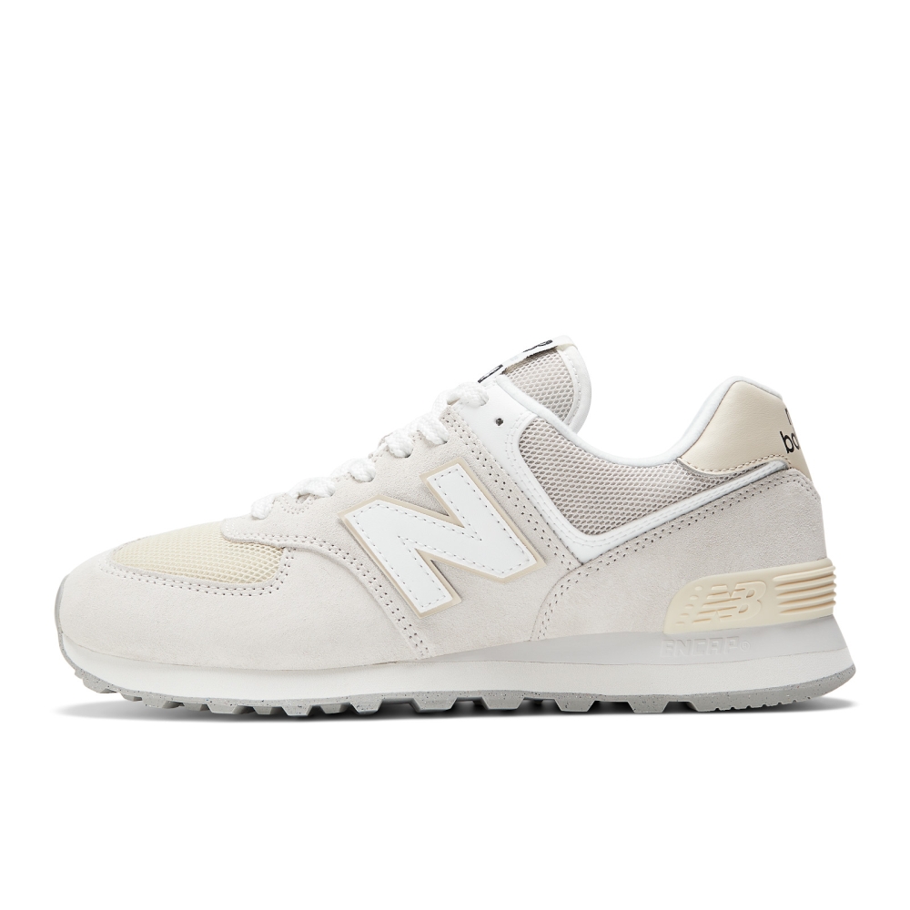 New Balance 574 Beige White (U574FOG) — классические и удобные кроссовки с сочетанием бежевого и белого цветов. Верх из замши и сетки обеспечивает комфорт и хорошую вентиляцию. Подошва с технологией ENCAP гарантирует амортизацию и поддержку стопы, что делает обувь подходящей для повседневной носки.