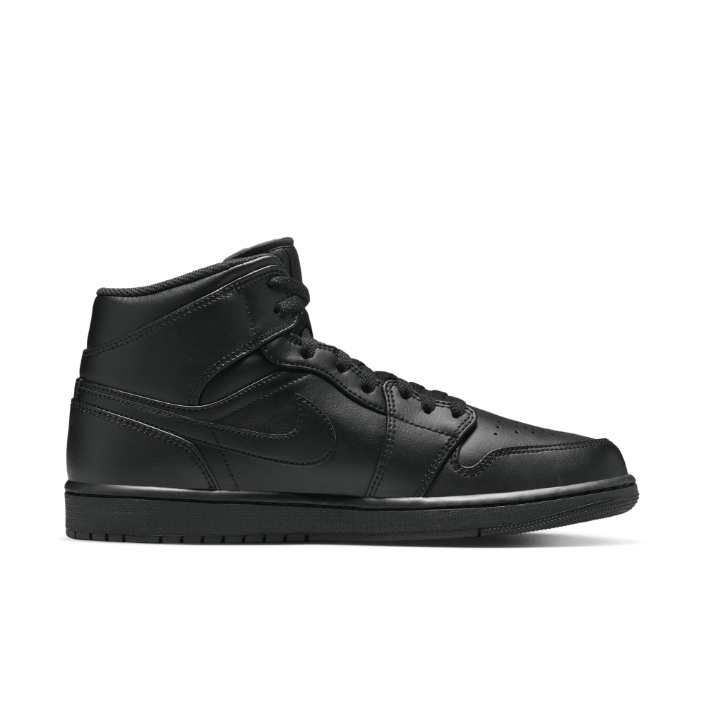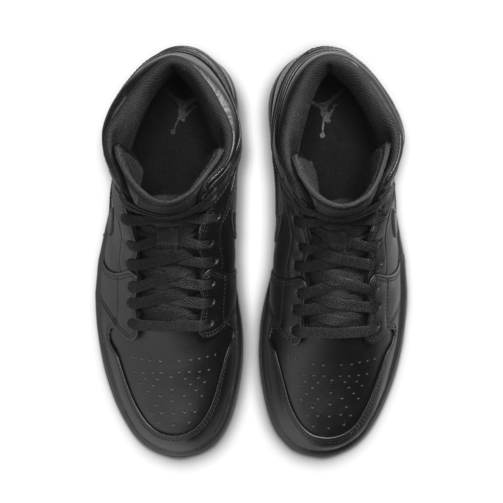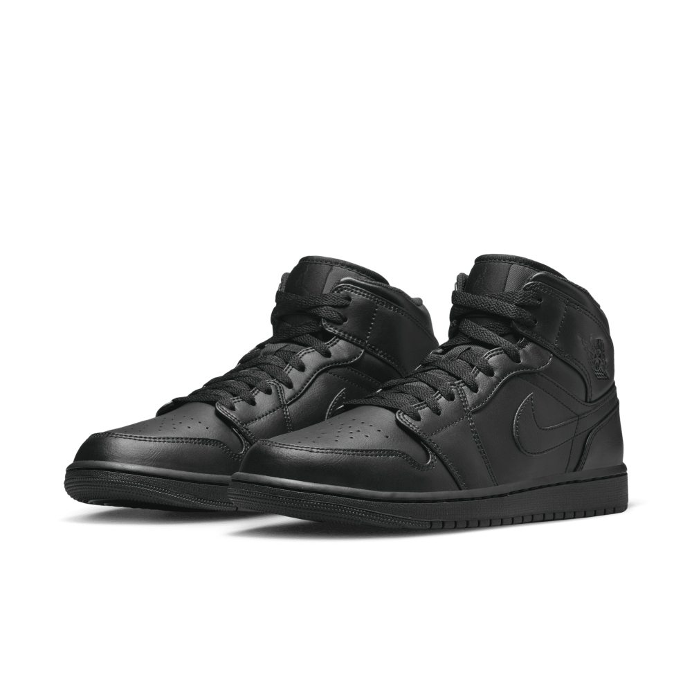 Кроссовки Air Jordan 1 Mid Black, выполнен в черном цвете, придают современный вид ретро-баскетбольной модели. Кожаный верх с перфорированным носком украшен эмблемами Jordan и логотипами Swoosh на боковинах. История первых номерных начинается с 1985 года и подписания контракта между Nike и Майклом Джорданом, который тогда и не подозревал во что это выльется.