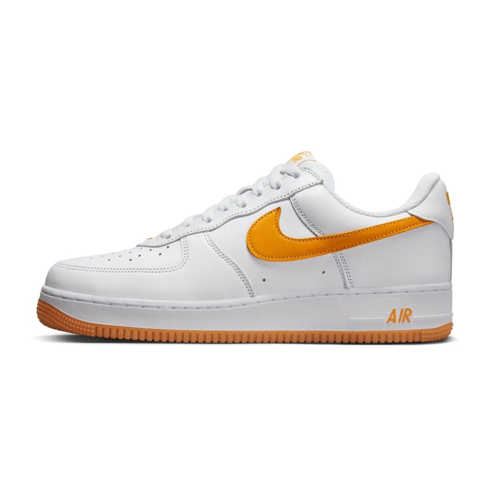 После своего 40-летнего юбилея в прошлом году модель Air Force 1 Low Брюса Килгора продолжает выпускаться в новых версиях, включая эту расцветку с водонепроницаемым материалом. Кроссовки выполнены в белом и в золотистом цвете. Nike Air Force 1 Low имеет верх из белой кожи с сетчатыми язычками и подкладкой. Весь верх покрыт