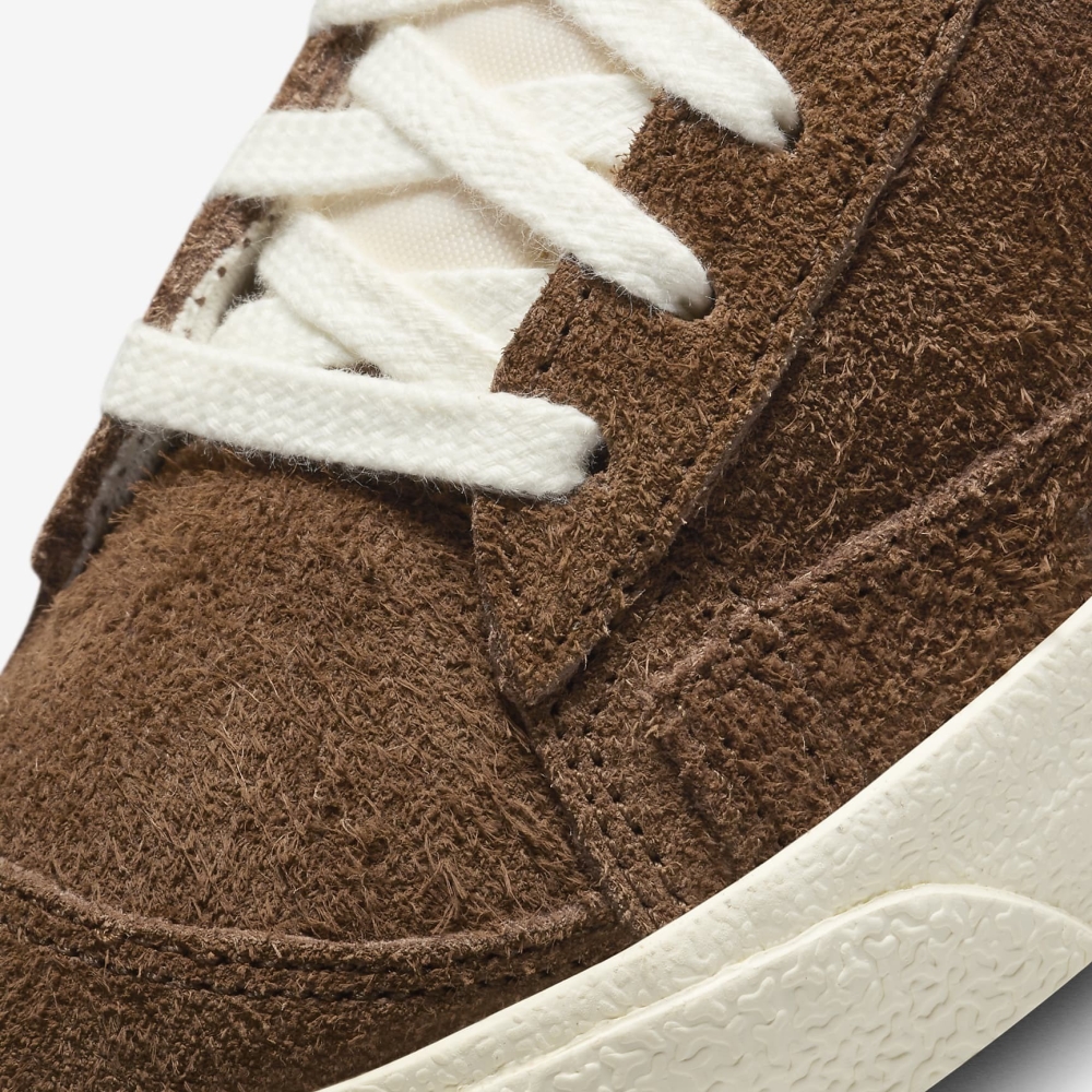 С 1970-х годов Nike Blazer Mid претерпел несколько изменений, последние из которых появились в составе фирменного пакета «Pro Club». На первый взгляд силуэт выглядит в своем традиционном ансамбле, с теми же линиями дизайна, с которыми он дебютировал несколько десятилетий назад, но при ближайшем рассмотрении обнаруживается обратное. Во-первых, тканевые панели втиснуты между кусками кожи на профилях, что придает боковым галочкам другой фон, чем обычно. На боковой стороне кроссовки белого цвета имеют дополнительный кусок материала в средней части стопы.