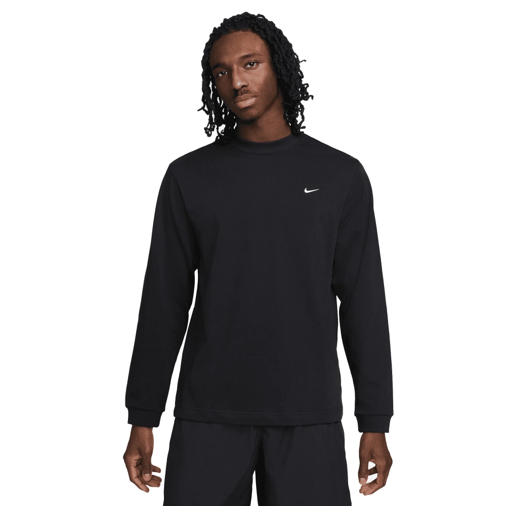 Лонгслив Nike Solo Swoosh Long-Sleeve Top в цвете "Black". Это стильный и функциональный верх с длинным рукавом, который сочетает минималистичный дизайн с классической эстетикой Nike. Материал, из которого изготовлен топ, обеспечивает комфорт и свободу движений, что делает его подходящим как для повседневной носки, так и для легких тренировок. Модель выделяется своим сдержанным брендингом: маленький логотип Swoosh на груди. Это универсальная одежда, которую можно комбинировать с другими элементами гардероба. Преимущественно используется высококачественный трикотажный материал, мягкий на ощупь, с прочной отделкой, что гарантирует долговечность и удобство.