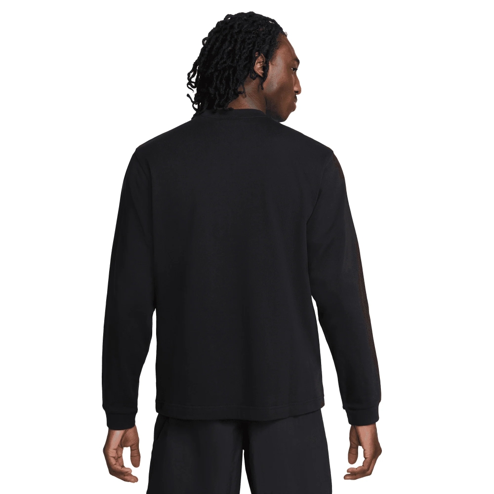 Лонгслив Nike Solo Swoosh Long-Sleeve Top в цвете "Black". Это стильный и функциональный верх с длинным рукавом, который сочетает минималистичный дизайн с классической эстетикой Nike. Материал, из которого изготовлен топ, обеспечивает комфорт и свободу движений, что делает его подходящим как для повседневной носки, так и для легких тренировок. Модель выделяется своим сдержанным брендингом: маленький логотип Swoosh на груди. Это универсальная одежда, которую можно комбинировать с другими элементами гардероба. Преимущественно используется высококачественный трикотажный материал, мягкий на ощупь, с прочной отделкой, что гарантирует долговечность и удобство.