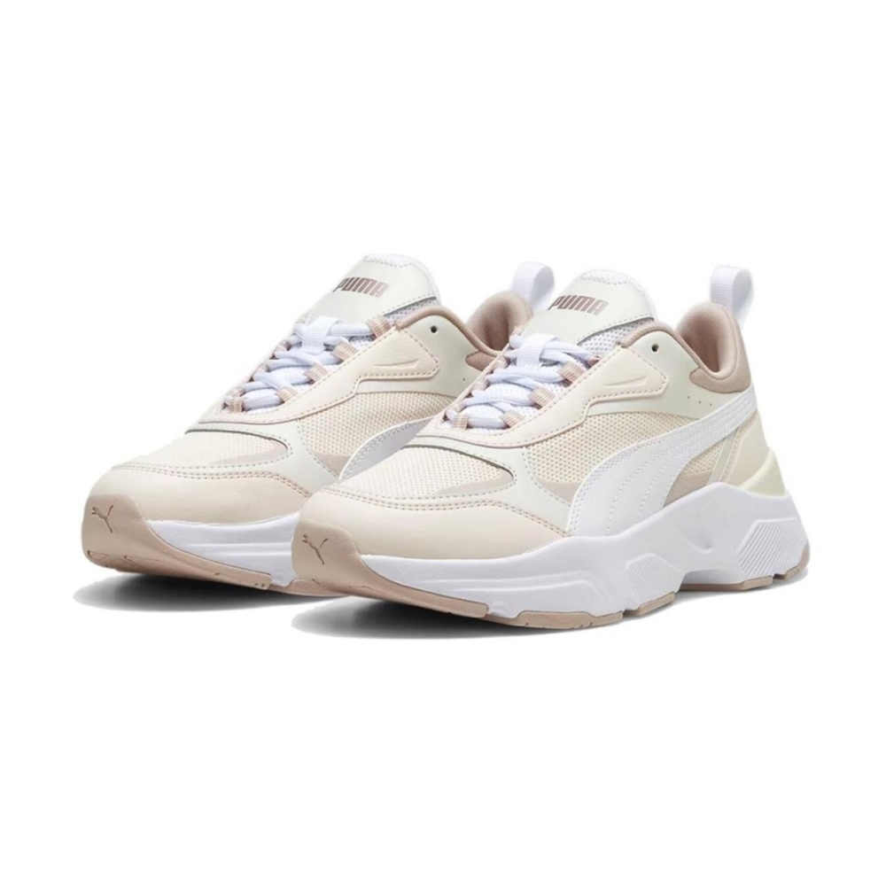 Кроссовки Puma Cassia — это модель, вдохновленная современными тенденциями уличного стиля с элементами классического дизайна Puma. В этих кроссовках используется прочный верх из кожи и текстиля, дополненный слегка увеличенными вставками, которые придают модели объёмный, модный вид. Обувь оснащена фирменной стелькой SOFTFOAM+, которая обеспечивает комфорт за счет амортизации и поддерживает стопу в течение всего дня, делая эти кроссовки подходящими для длительного ношения. Внутренняя часть имеет EVA-подошву, которая делает обувь легкой и обеспечивает хорошую амортизацию, снижая нагрузку при ходьбе. Платформенная подошва, характерная для модели Cassia, придает дополнительную высоту и стиль, что добавляет универсальности кроссовкам: их можно носить как с повседневной одеждой, так и со спортивным стилем.