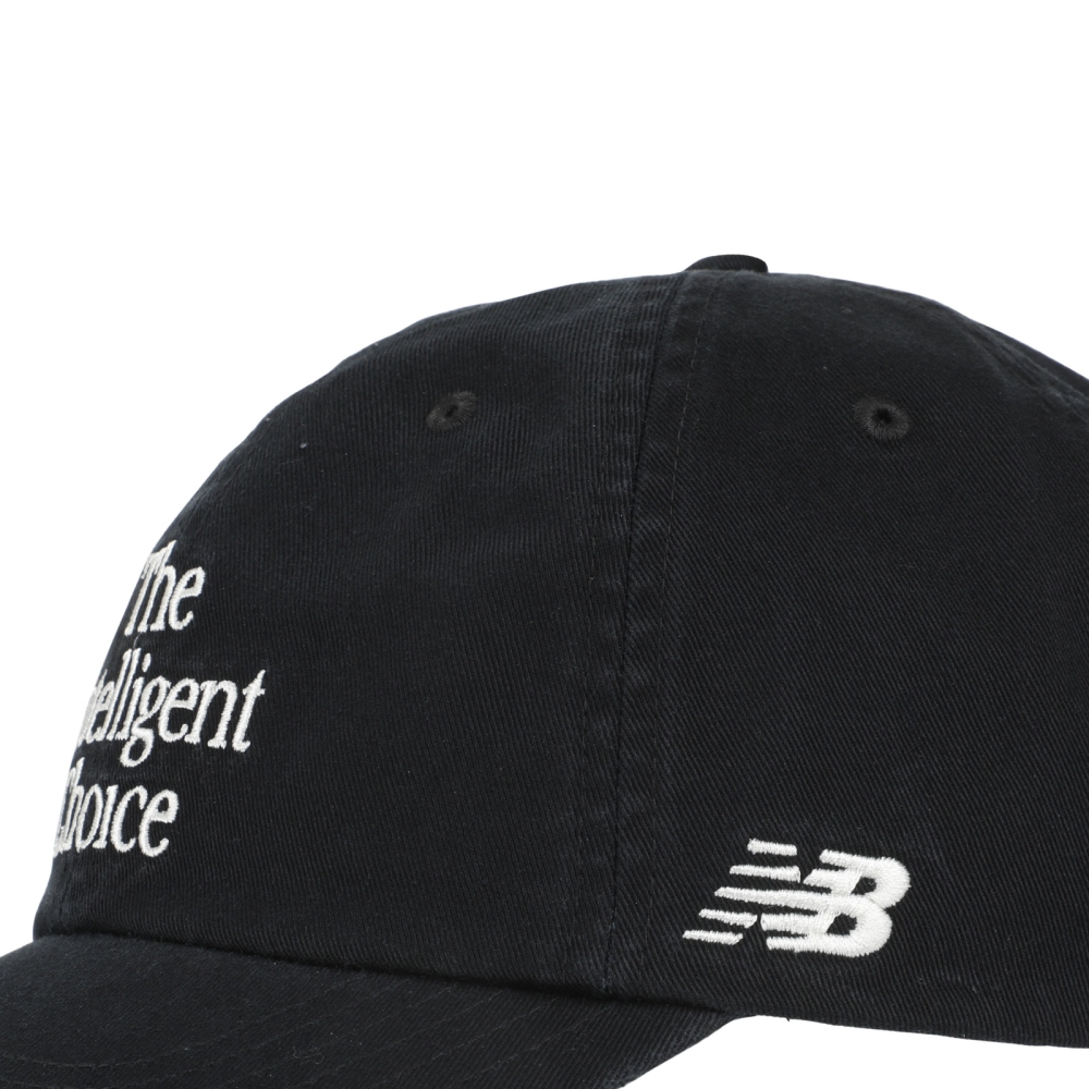 Классическая кепка в фирменном стиле New Balance. Модель 6 Panel "The Intelligent Choice" выполнена в универсальном чёрном цвете и дополнена вышитым слоганом бренда — дань наследию и философии New Balance.