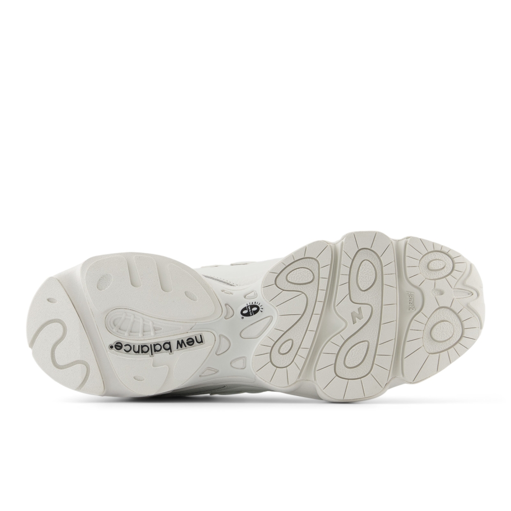 Архивная беговая модель получила обновлённый силуэт с техничными деталями и объёмным дизайном. Панели из кожи и сетки образуют сложную многослойную структуру, а цветовая гамма «Sea Salt / Reflection» подчёркивает минимализм в стиле ретро-футуризма.