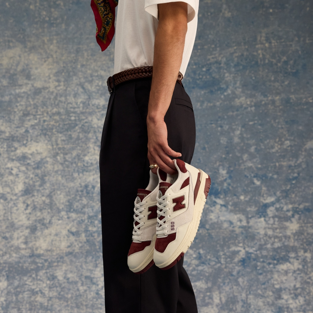 Модель BB550 возвращает винтажный стиль на улицы города: массивный силуэт, кожаный верх с перфорацией и аккуратные акценты из замши подчеркивают эстетику олдскула. Цветовая палитра в светлых тонах с пастельными деталями делает пару универсальной и актуальной.